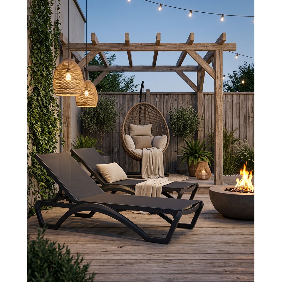 Leżak ogrodowy NICEA czarny, nowoczesny komfort relaksu