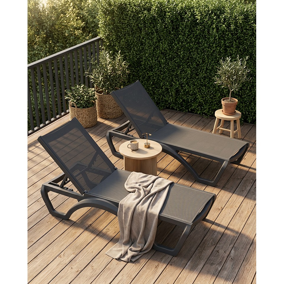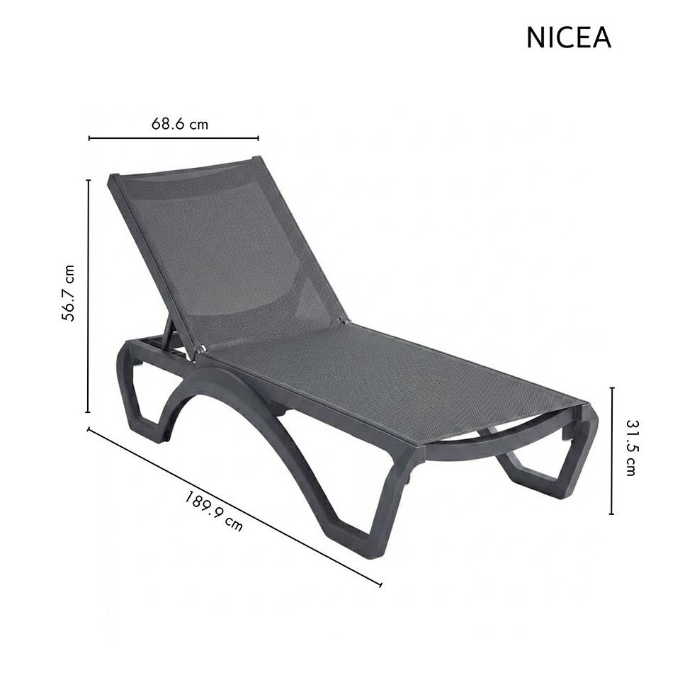Leżak ogrodowy NICEA czarny. to nowoczesny i wygodny leżak zaprojektowany z myślą o komfortowym wypoczynku na świeżym powietrzu, łączący ergonomię z trwałością materiałów.