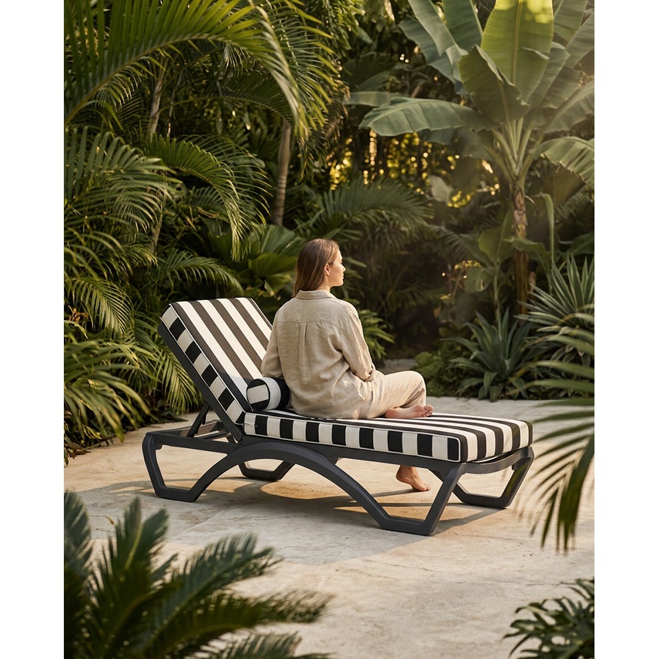 Regulowane oparcie pozwala na łatwe dopasowanie pozycji do opalania, czytania lub relaksu. Ergonomicznie zaprojektowany kształt zapewnia wysoki komfort użytkowania nawet podczas dłuższego wypoczynku.