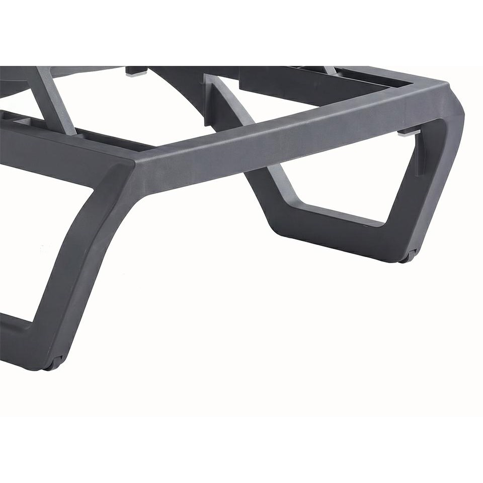 Stabilna konstrukcja leżaka została wykonana z trwałego polipropylenu, odpornego na warunki atmosferyczne oraz łatwego w utrzymaniu czystości. Zarówno leżak, jak i materac wyposażono w ochronę UV, dzięki czemu zachowują kolor i jakość nawet przy intensywnym nasłonecznieniu.