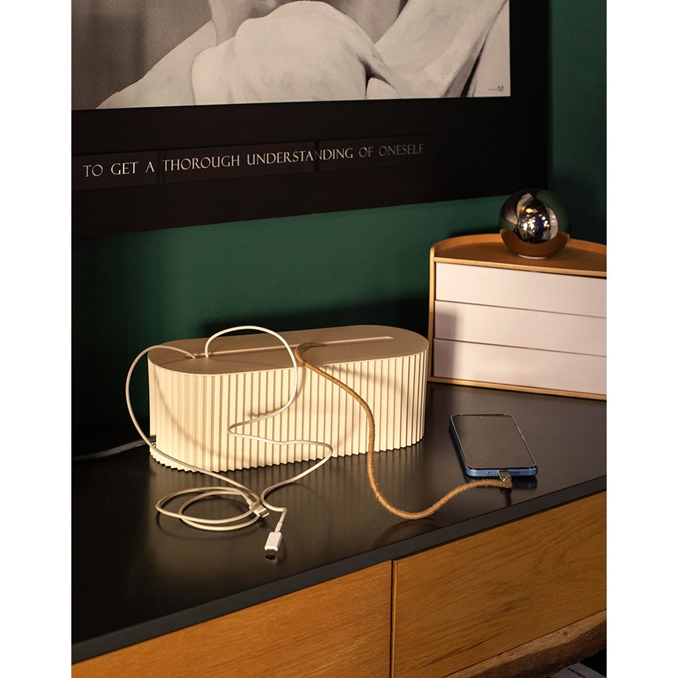 Organizer na przedłużacz DULE to funkcjonalny i estetyczny dodatek, który pozwala w łatwy sposób uporządkować kable oraz przedłużacze, eliminując ich plątanie i nieestetyczny chaos. Jego beżowa kolorystyka nadaje mu elegancji i sprawia, że doskonale wpisuje się w nowoczesne wnętrza.