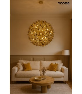 Lampa wisząca MOOSEE MONETE 65 w złotym wykończeniu to spektakularna, trójwymiarowa dekoracja świetlna o biżuteryjnym charakterze, idealna do luksusowych i reprezentacyjnych wnętrz.