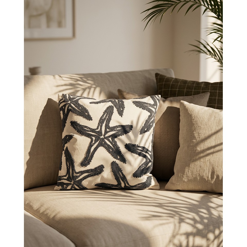 Poduszka dekoracyjna SHP STARFISH 45x45 beż szary to stylowy dodatek inspirowany nadmorskim klimatem, który wnosi do wnętrza lekkość, spokój i subtelną elegancję.