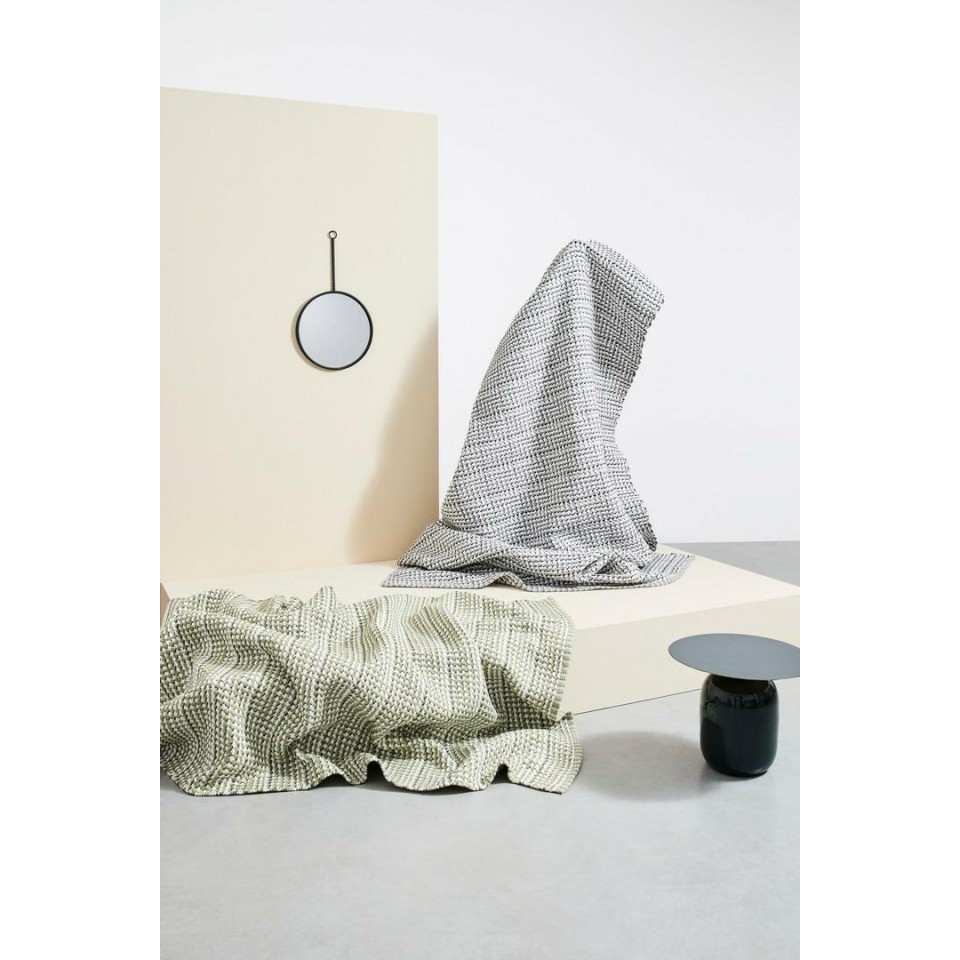 Okrągły blat osadzony na podstawie subtelnie zwężającej się ku dołowi tworzy elegancką sylwetkę o stożkowatym profilu. Stolik doskonale prezentuje się w aranżacjach glamour, nowoczesnych, eklektycznych, a także we wnętrzach inspirowanych stylem mid century modern.
