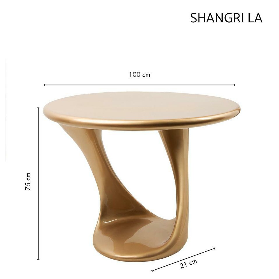 Stół SHANGRI LA złoty to designerski mebel o rzeźbiarskiej formie,który zachwyca organiczną linią podstawy i eleganckim,złotym wykończeniem.