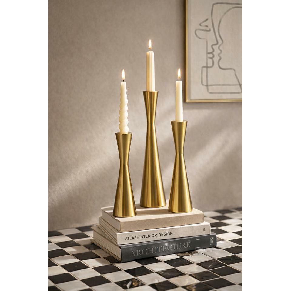 Zestaw 3 świeczników SHP TRIO złoty, nowoczesna elegancja w smukłej formie